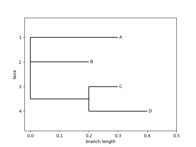 tree.clade [0] --> A, tree.clade [1] --> B , tree.clade [2,0] --> C, tree.clade [2,1] --> D 가 된다.