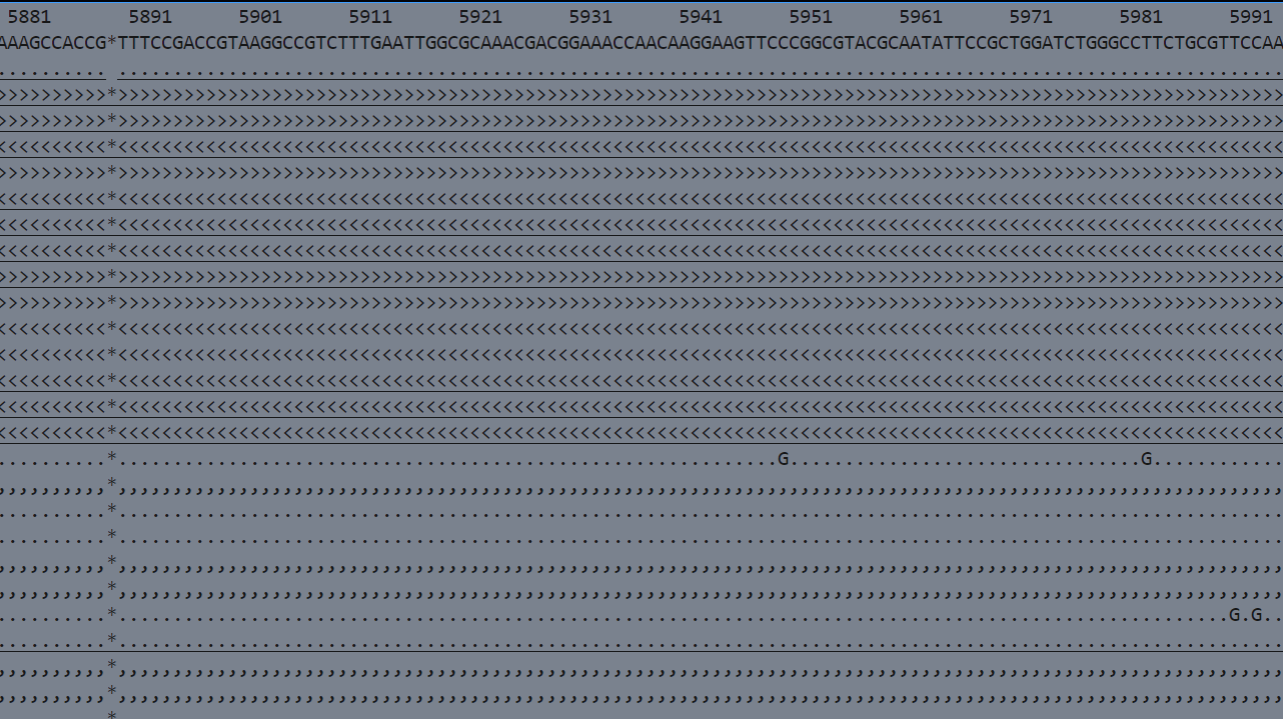 이제 samtools tview를 통해 mapping 이 어떻게 되었는지 확인해 보자.