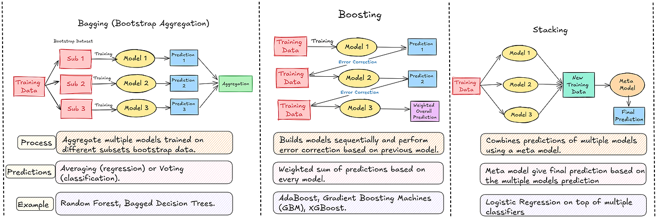 - Example: Random Forest is a well-known bagging-based ensemble of decision trees.